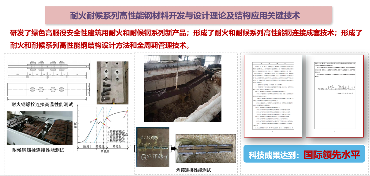 圍繞主(zhu)要研髮(fa)方(fang)向,鋼(gang)結構中(zhong)心承(cheng)擔了(le)國(guo)傢(jia)“863”、“973”、“十二五”、“十三五”、“十四五”國(guo)傢(jia)科(ke)技(ji)支撐計(ji)劃、國(guo)傢(jia)自然科(ke)學(xué)基金、國(guo)傢(jia)重(zhong)大(da)專(zhuan)項(xiang)等(deng)各級各類科(ke)研項(xiang)目(mu)140餘項(xiang),編製(zhi)國(guo)傢(jia)、行業标準規範90餘部(bu),獲授(shou)權專(zhuan)利380餘件,獲國(guo)傢(jia)及(ji)省部(bu)級科(ke)研獎勵70餘項(xiang),其中(zhong)榮國(guo)傢(jia)科(ke)技(ji)進(jin)步獎3項(xiang),在(zai)國(guo)內(nei)外赢得了(le)崇高(gao)聲譽。